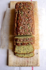 A kenyérformába sütőpapírt teszünk és beletesszük a megkelt tésztát. A tetejét vízzel megkenjük és megszórjuk a tökmaggal. A sütőt nem légkeverésesre állítottjuk, hanem normál alul-felül sütésre. A rács alá tegyünk egy üvegtálba vizet, hogy jól begőzölje a sütőt. Így süssük a kenyeret 180 fokon, 60 percen át.