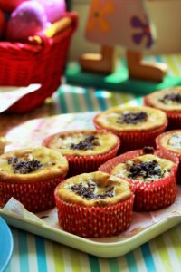 Nagyon egyszerűen egy nagy tálba rakjuk össze a hozzávalókat és szép csomómentesre kavarjuk össze őket. A bögrés muffinhoz nem is kell több. A kis muffin formákba adagoljuk ki a tésztát, elég egy evőkanálnyi, mert sütés sörén megdagadnak. A tetejére szórjunk még egy kis szárított levendulavirágot és előmelegített sütőben 180 fokon süssük meg. Villával vagy fogpiszkálóval csináljunk próbát, hogy átsült e, ha igen már készen is van a desszert.